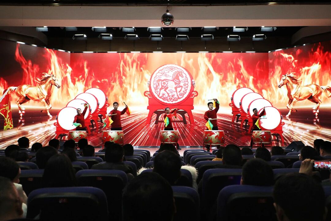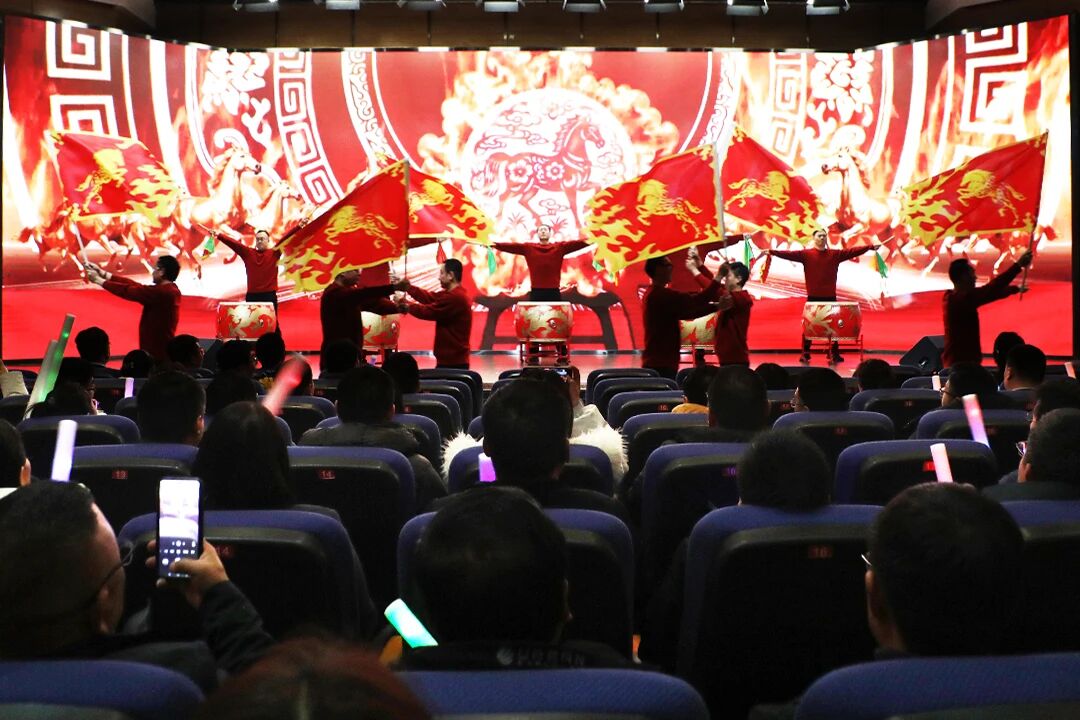 盛会间隙,文艺汇演精彩纷呈,现场氛围热烈高涨。销售团队执旗击鼓登场,鼓点铿锵、旌旗猎猎,尽显昂扬锐气与磅礴气势。